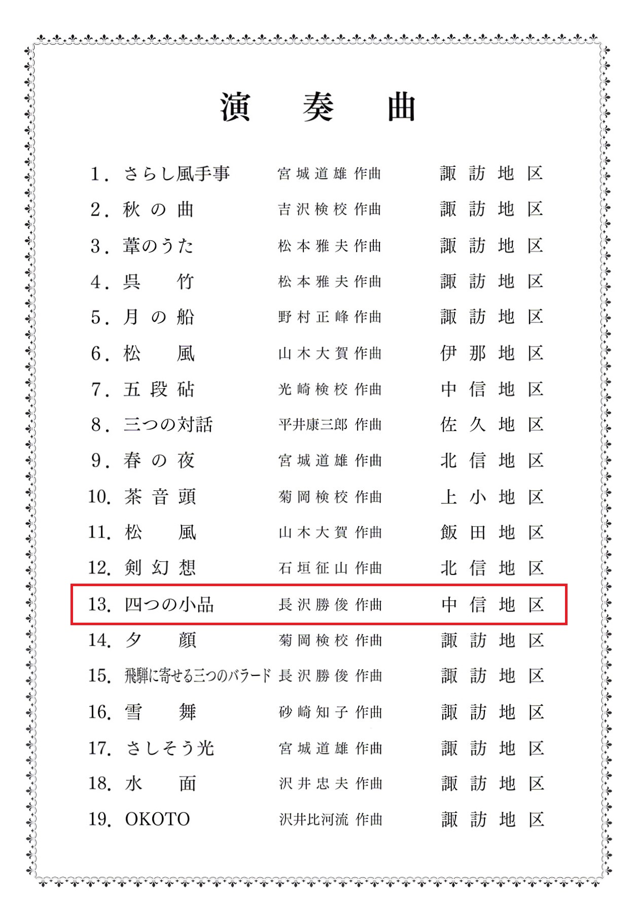 曲目:琉球民謡による組曲(牧野由多可作曲