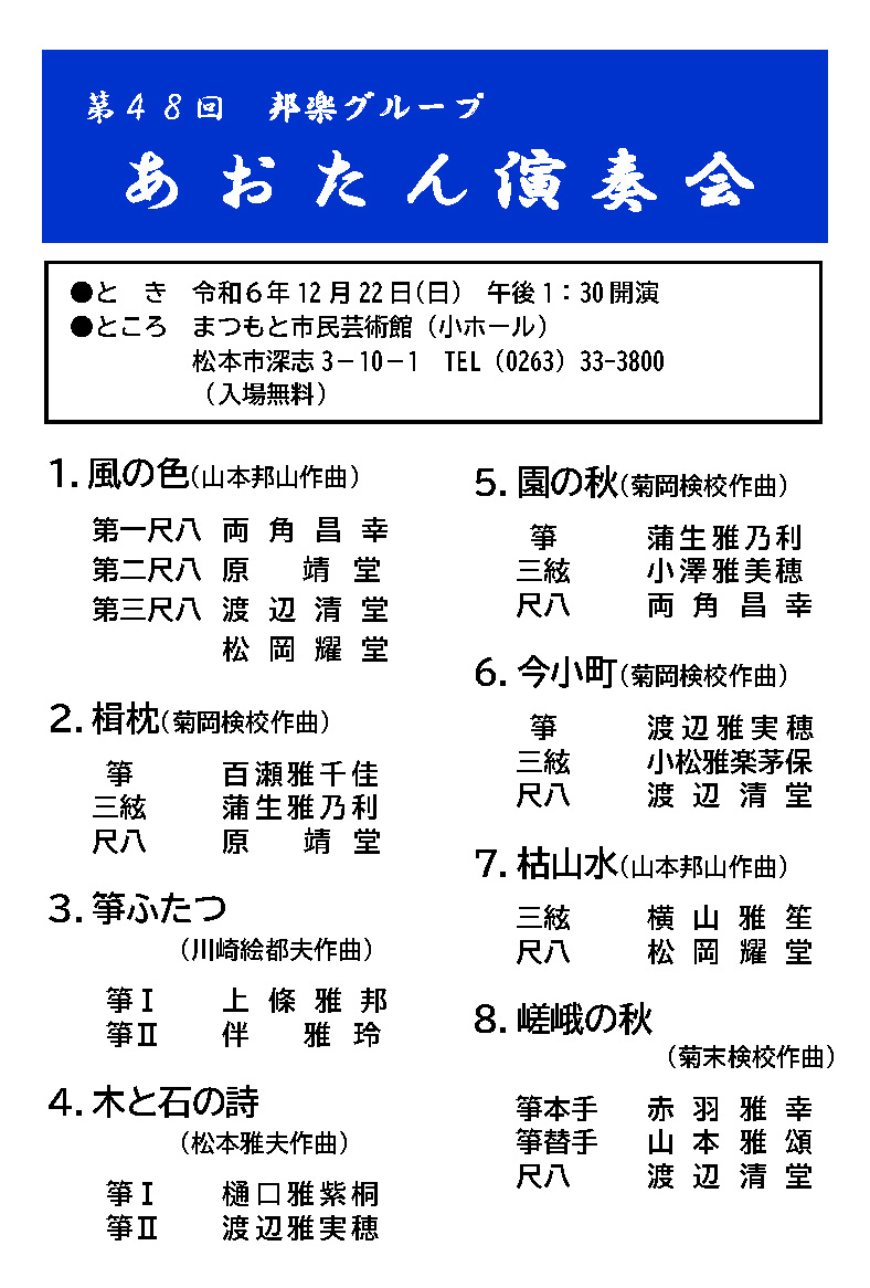 曲目:六段の調、千鳥の曲、春の海、萩の露