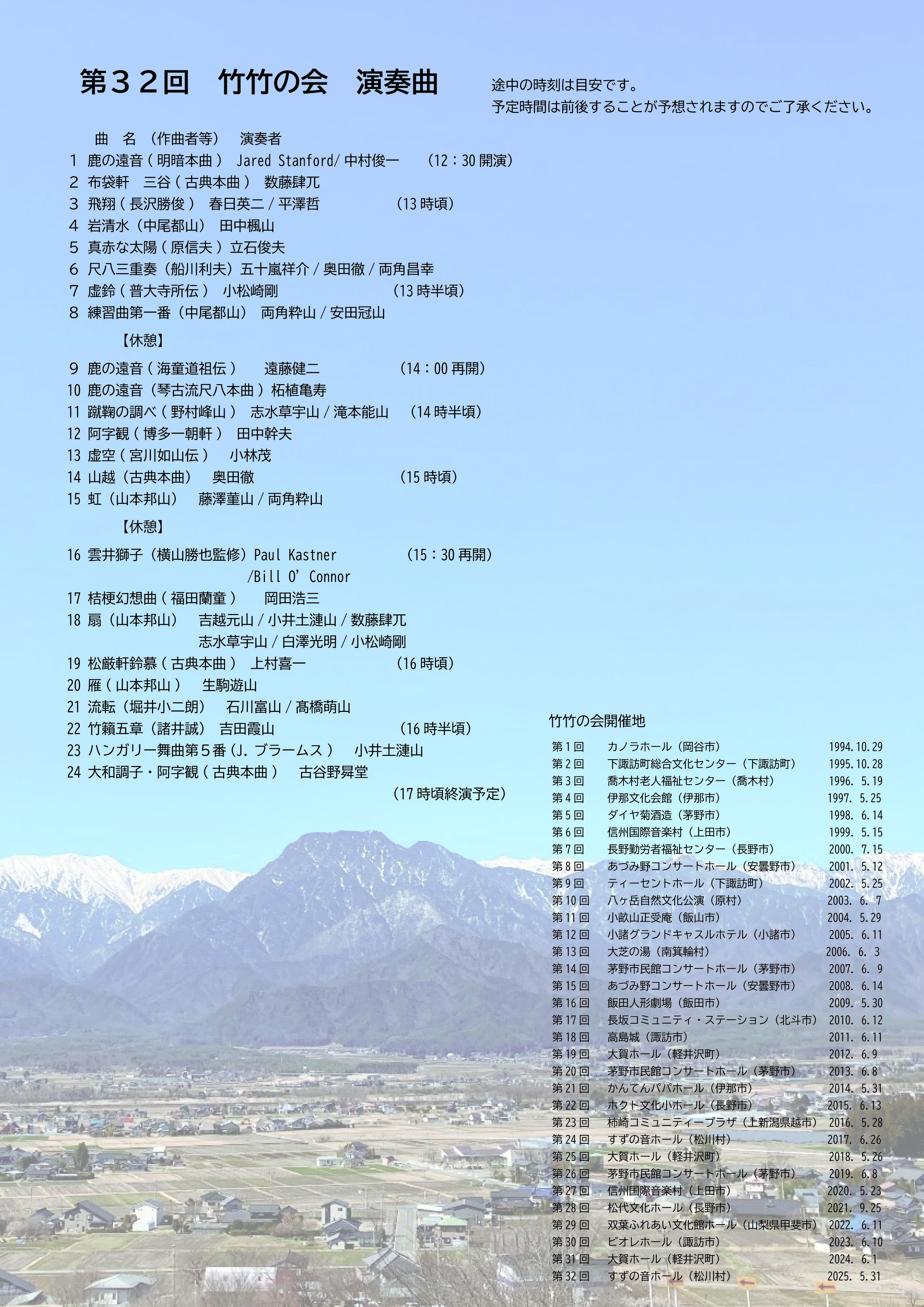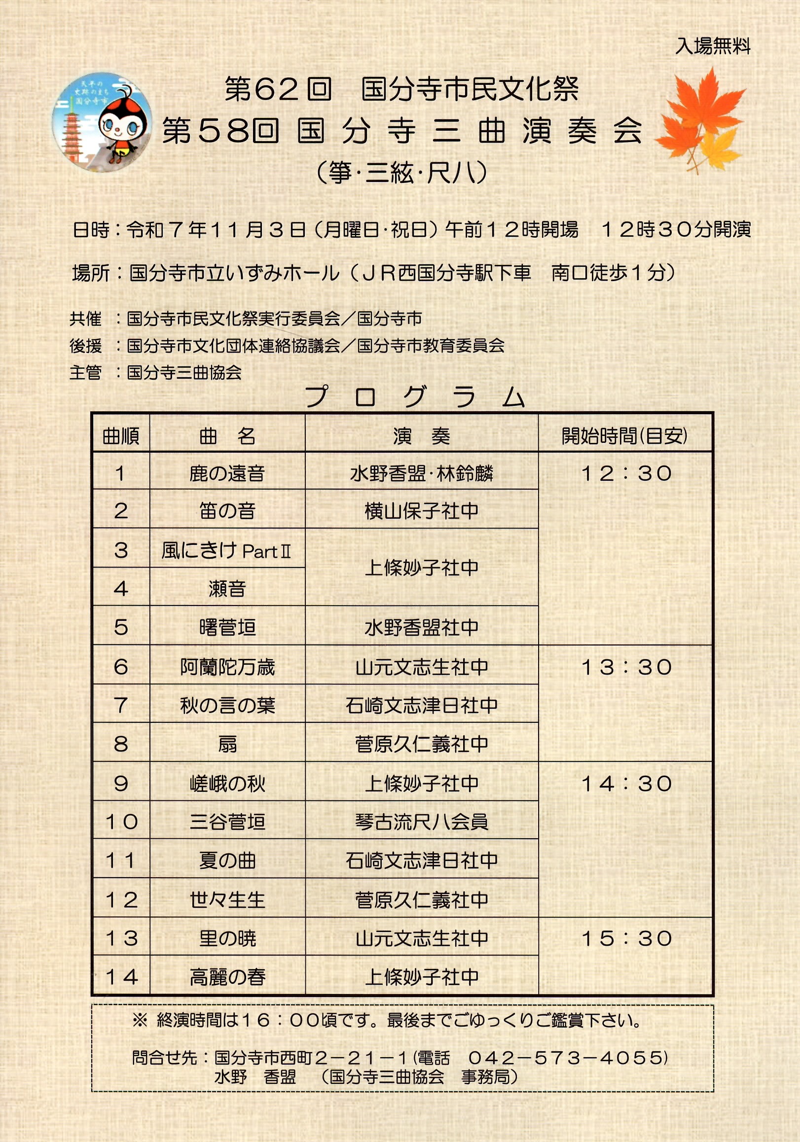 曲目:春の海、鹿の遠音、花影、三谷、絵夢